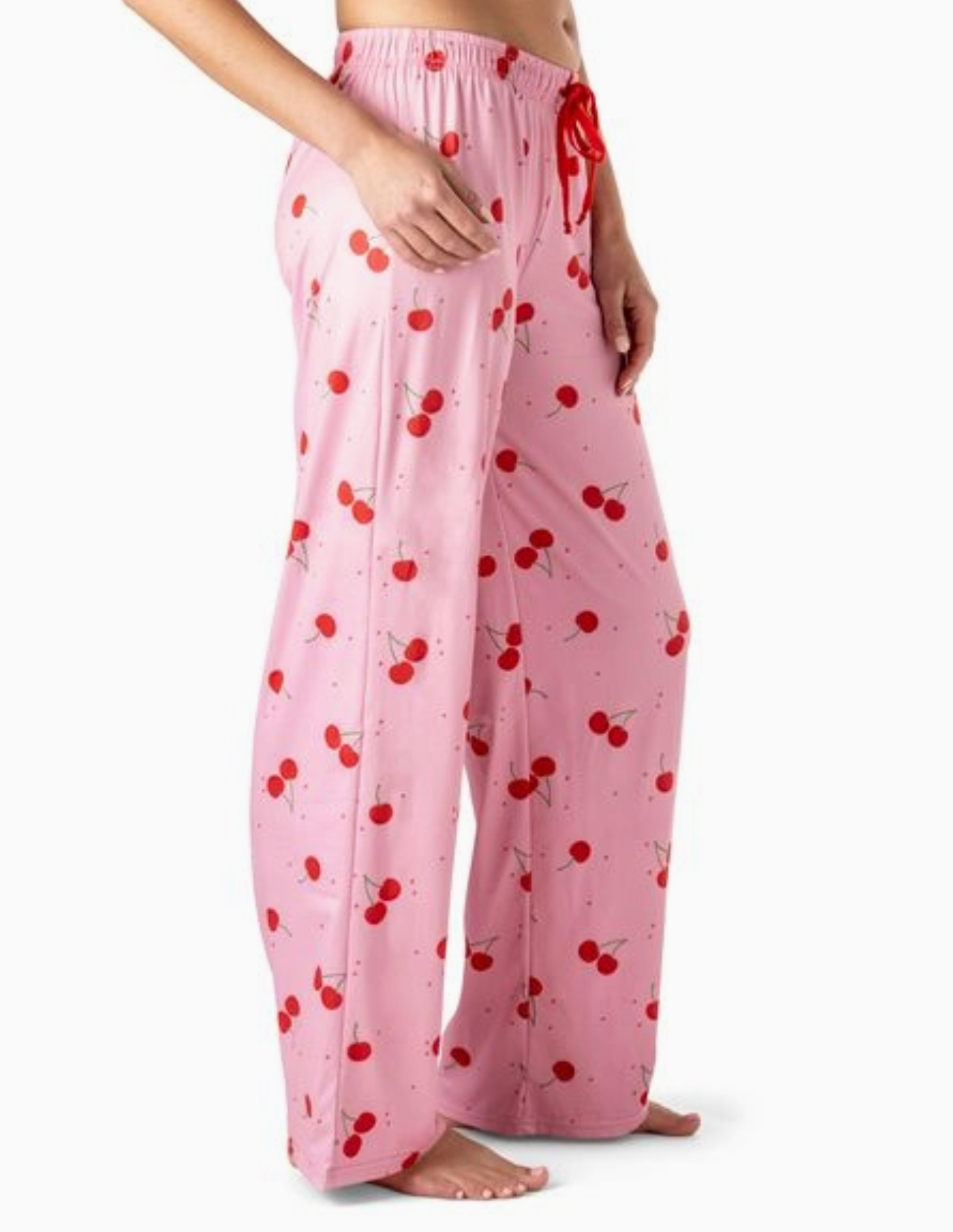 Looking for the perfect pajama pants to keep you cozy yet polished? The Sweet Cherry Wide Leg Pajama Pants bring playful charm and effortless comfort to your lounge lineup. With a soft pink background scattered in cheerful red cherries and trimmed in matching red piping, these pants are as sweet as they are stylish. Designed in ultra-soft, stretchy fabric, they feature a relaxed wide-leg fit that moves with you, plus a comfy elastic waistband with a soft drawstring tie for that just-right fit. Whether you’re pairing them with the matching pajama top for a full set or styling them with your favorite tee, these pants will make every evening feel a little more fun and every morning a little more cheerful.