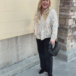 Elegant, luxurious, and effortlessly festive, the Taupe Bloom Sequin Button-Front Velvet Blouse brings a touch of sparkle to your wardrobe. Crafted in a rich taupe velvet, this blouse features shimmering silver sequin floral embroidery for a subtly glamorous effect. The classic collar and button-front closure add structure and polish, creating a sophisticated silhouette perfect for holiday gatherings, dinner parties, or elevated everyday looks.