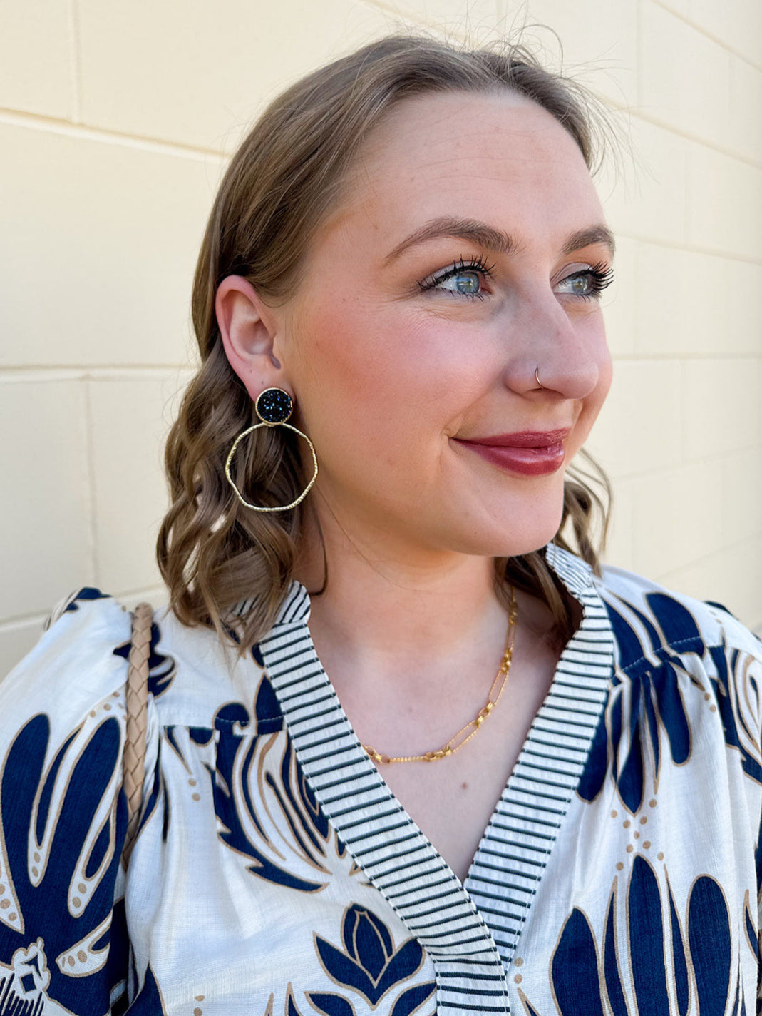 [Taylor Shaye] Glitter Top Round Hoops in Navy