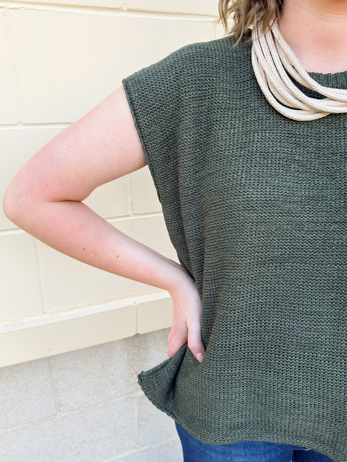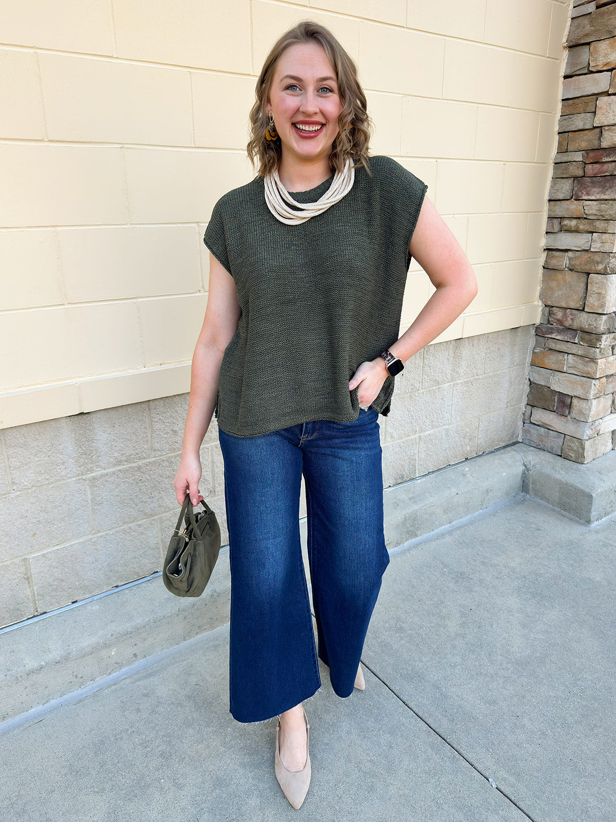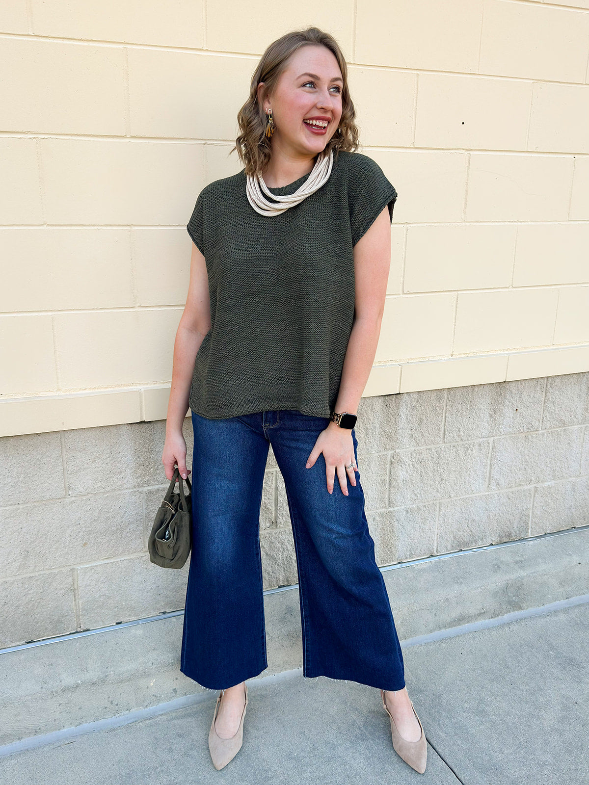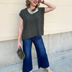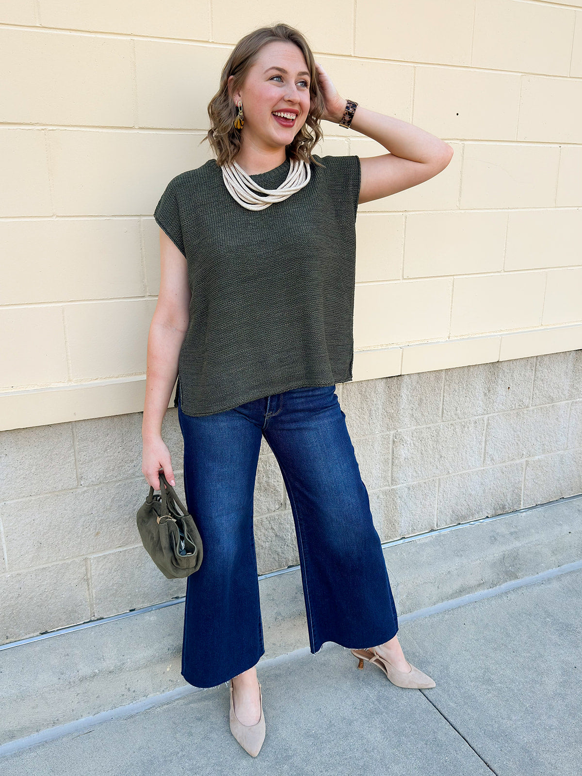 Easy, effortless, and perfectly relaxed — The Olive Grove Sweater is the definition of laid-back luxury. Designed in a rich dark olive hue, this oversized short-sleeve sweater brings just the right amount of cozy to your fall wardrobe. The crew neckline and drop shoulder silhouette create a casual, slouchy fit that feels as good as it looks, while the lightweight knit makes it ideal for layering through the changing seasons.