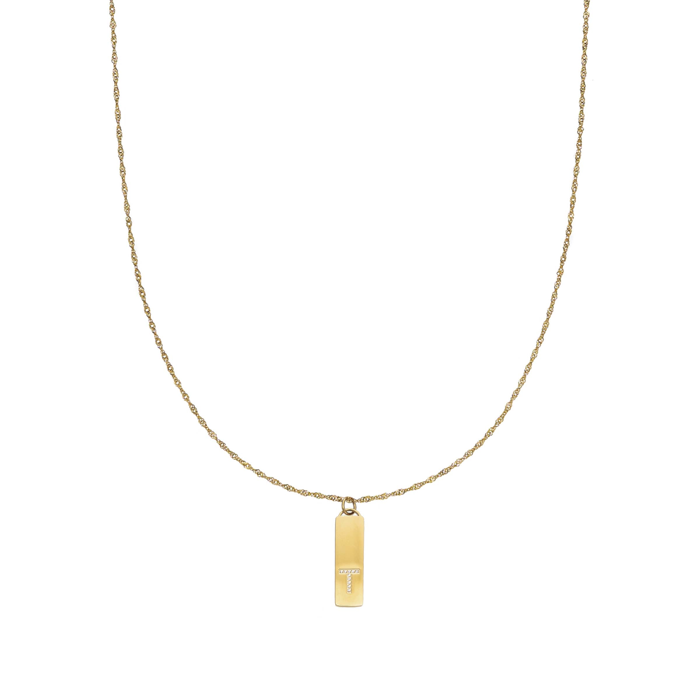 [Brenda Grands] Waterproof Gold CZ Initial Bar Necklace