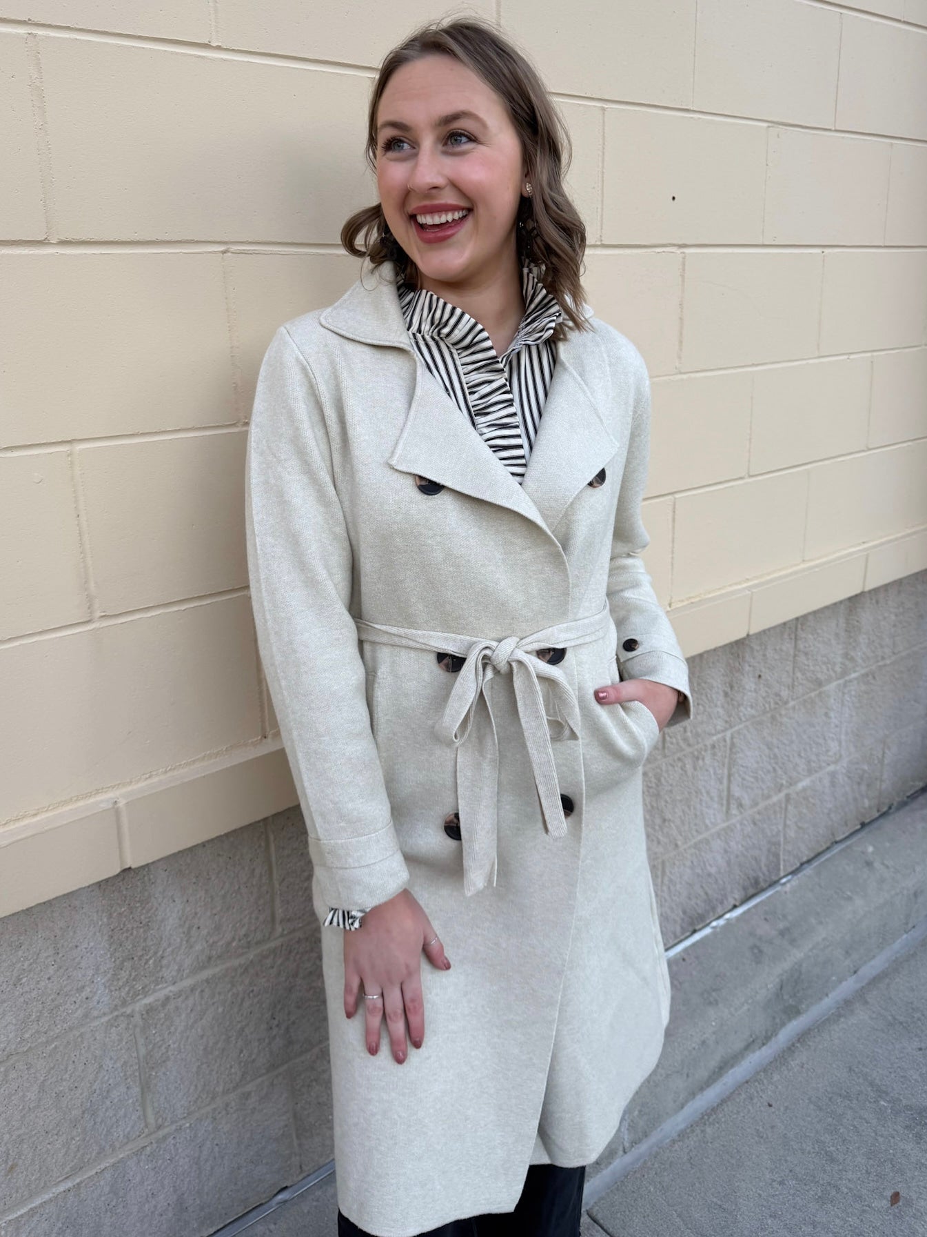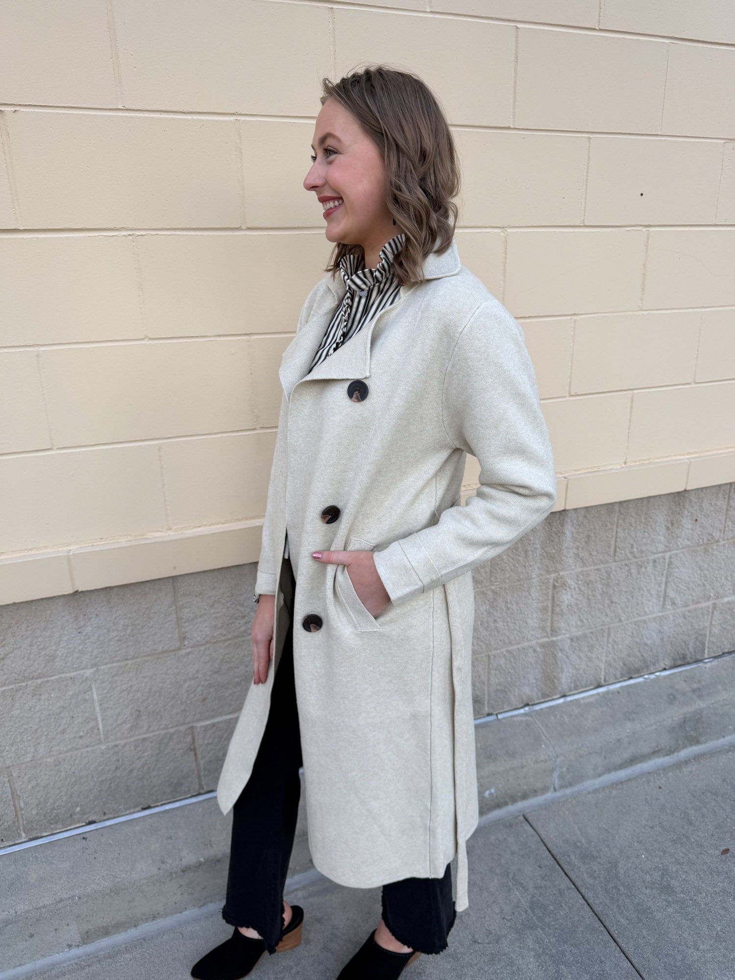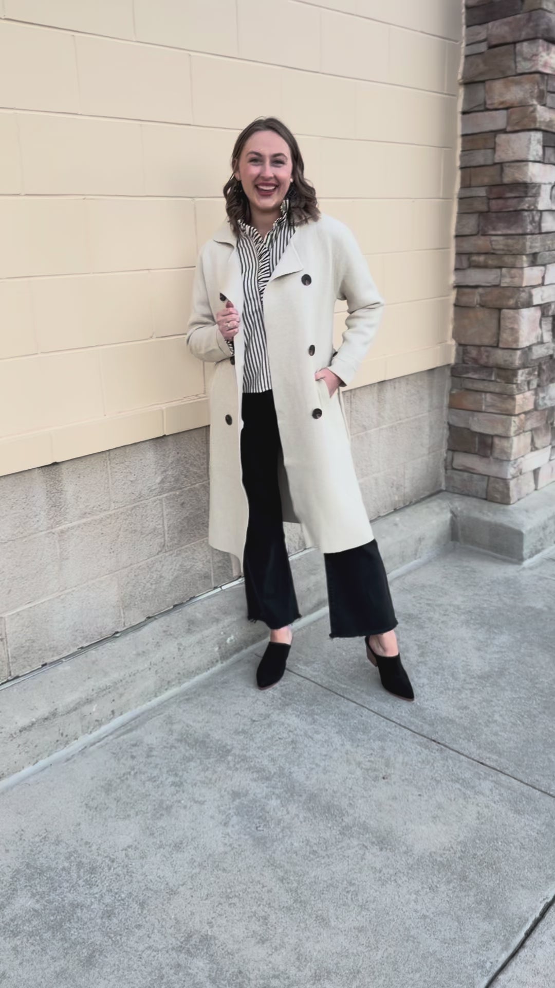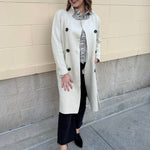 Crafted from a soft, warm fabric, this coat transitions seamlessly from day-to-night wear. Pair it with tailored trousers and ankle boots for a refined office look, or style over your favorite sweater dress for a weekend outing. The creamy neutral shade makes it a versatile addition that complements virtually any winter outfit.
